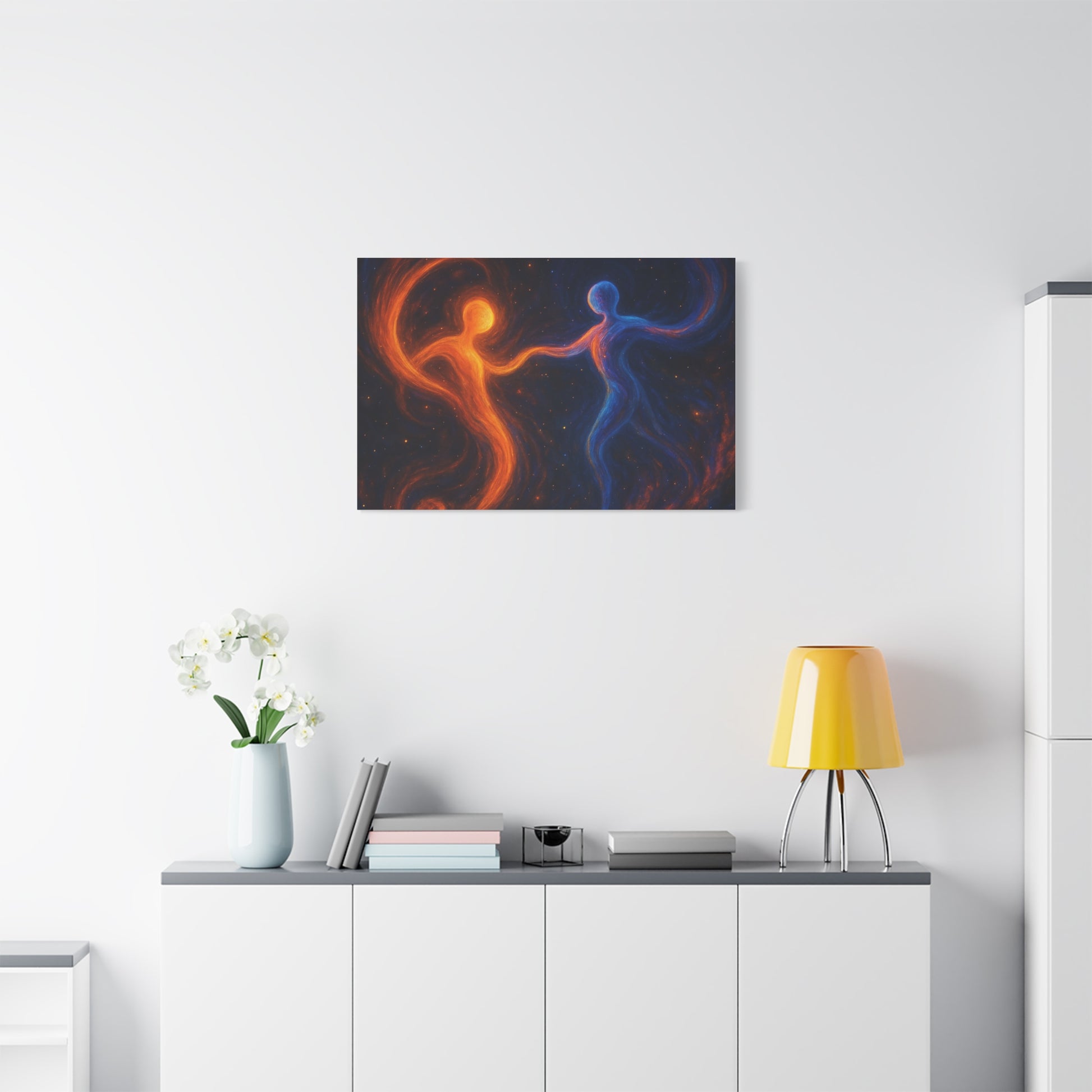 Bring balance and energy into any room with this Bruntee Fire & Water Spirit canvas. Featuring bold cosmic color and flowing elemental figures, this matte 1.25" stretched canvas adds depth, warmth, and modern abstract style to your home décor. Ideal for bedrooms, living rooms, and spiritual spaces.