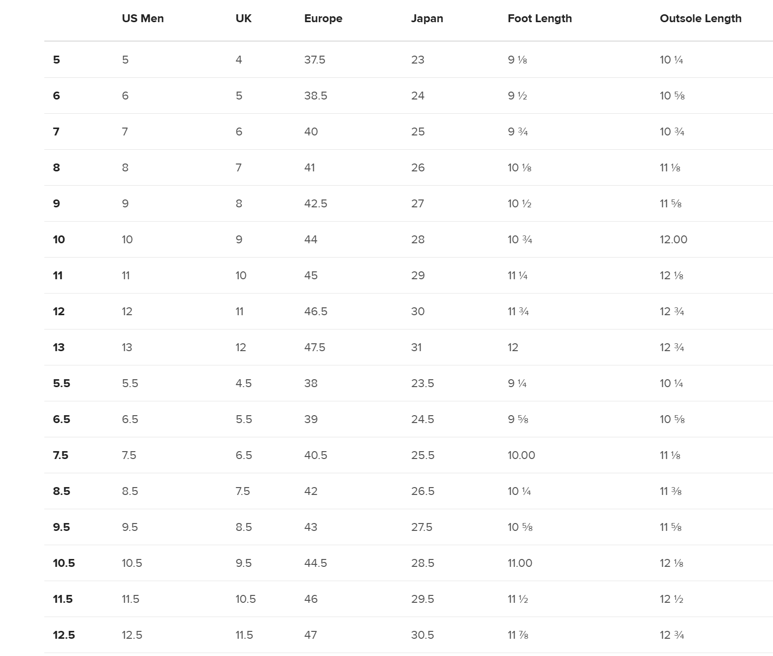 Where can I find the size chart?