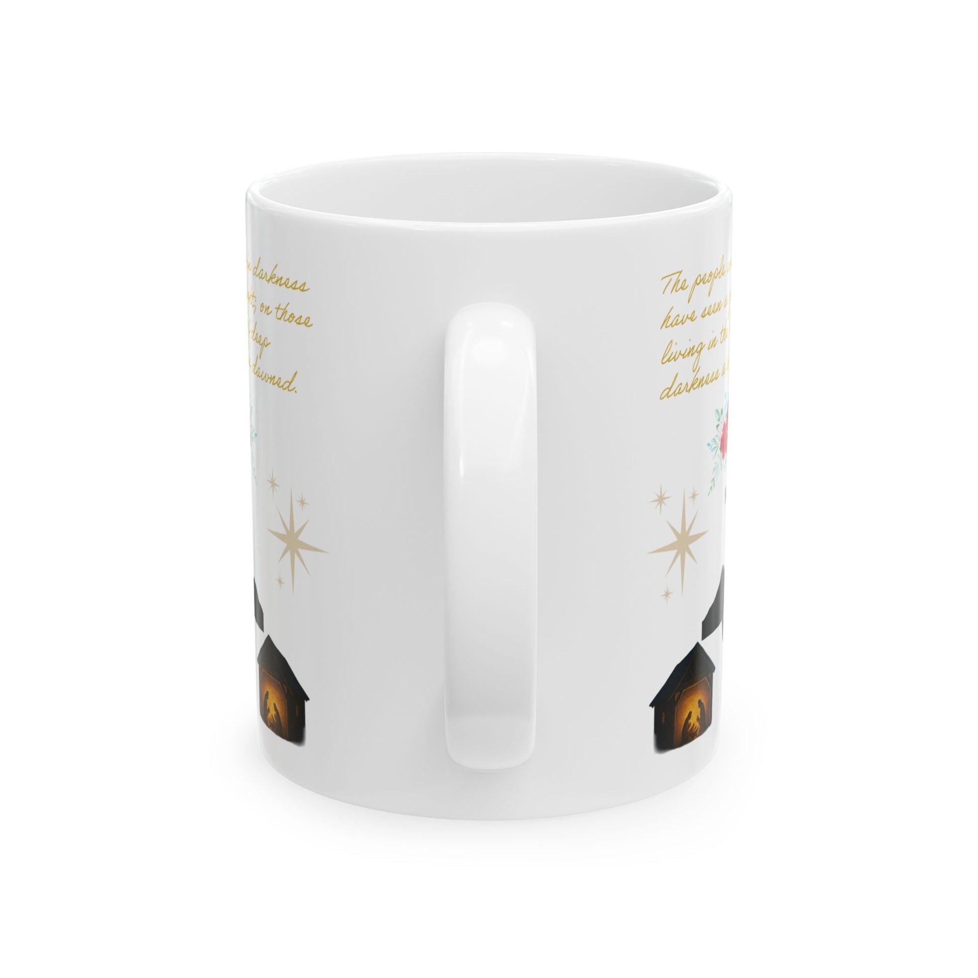 Celebrate the true meaning of Christmas with this Inspirational Ceramic Mug featuring the comforting scripture “The people walking in darkness have seen a great light” — Isaiah 9:2. The beautiful design showcases the Three Wise Men beneath the guiding star and a cozy nativity scene, symbolizing hope, light, and faith.