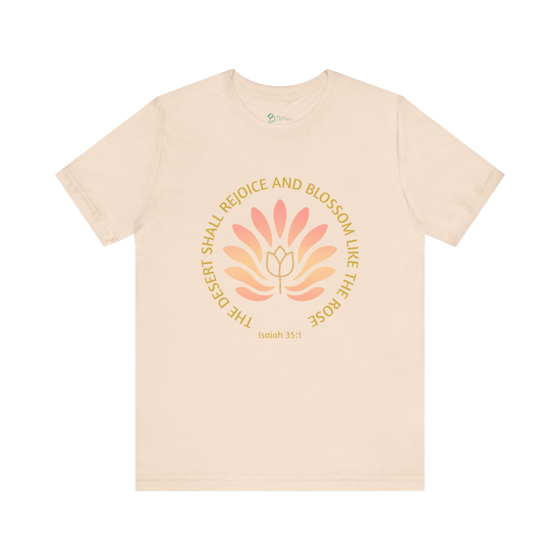Step out in confidence and faith with this Isaiah 35:1 Desert Blossom Tee — a timeless reminder that even in dry seasons, beauty and joy can bloom: