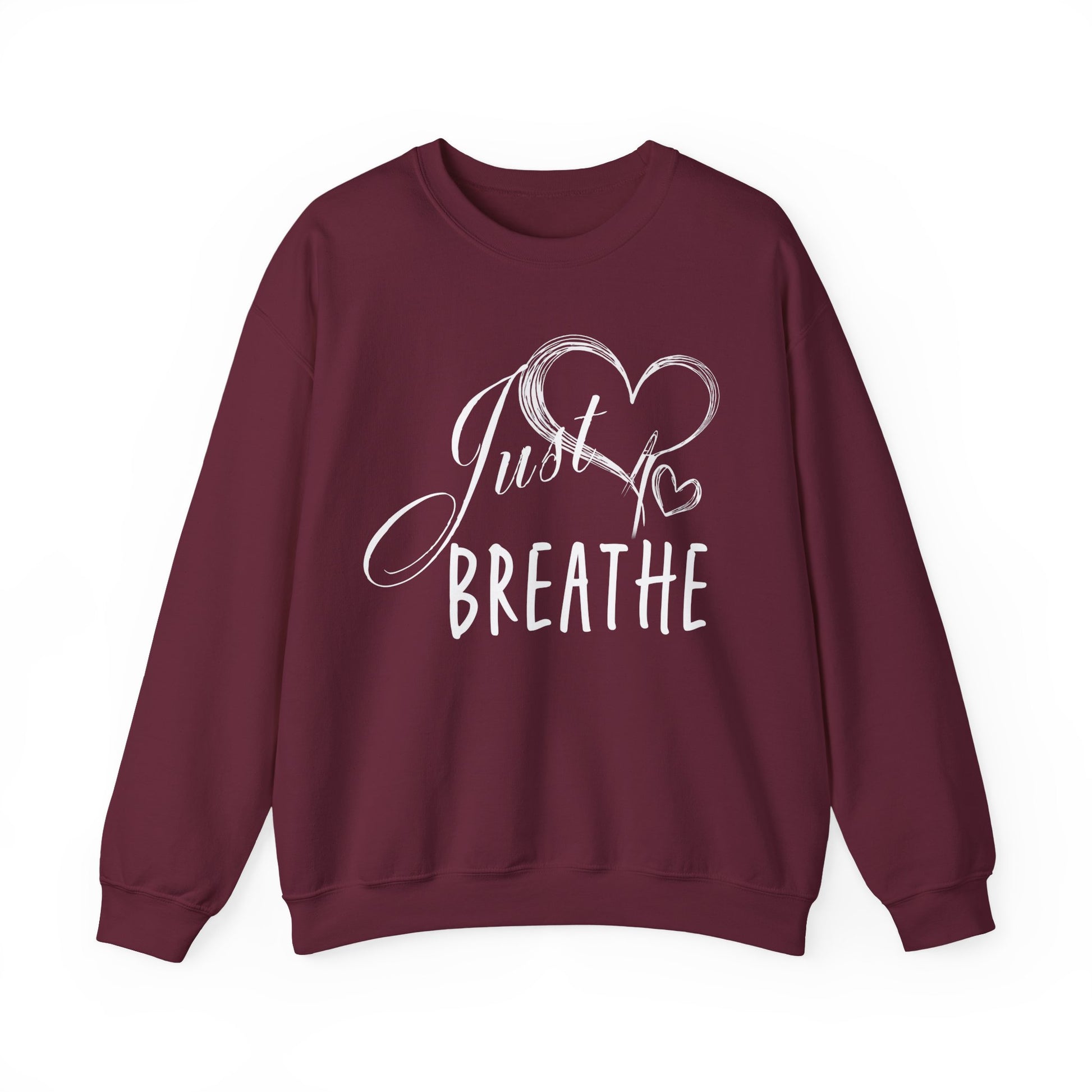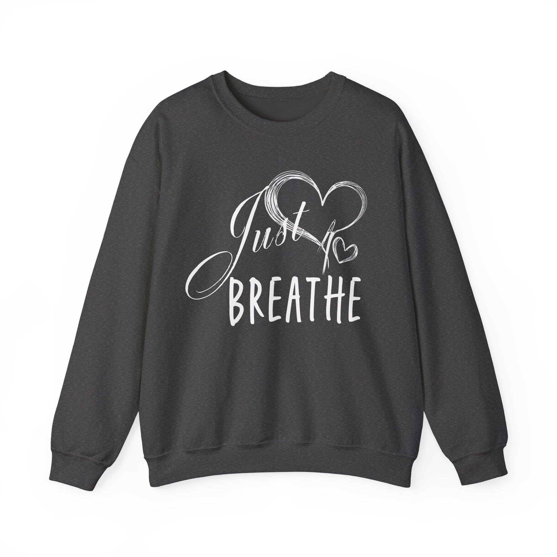 Take a deep breath and embrace calm with the Just Breathe Women’s Crewneck Sweatshirt by Bruntee.