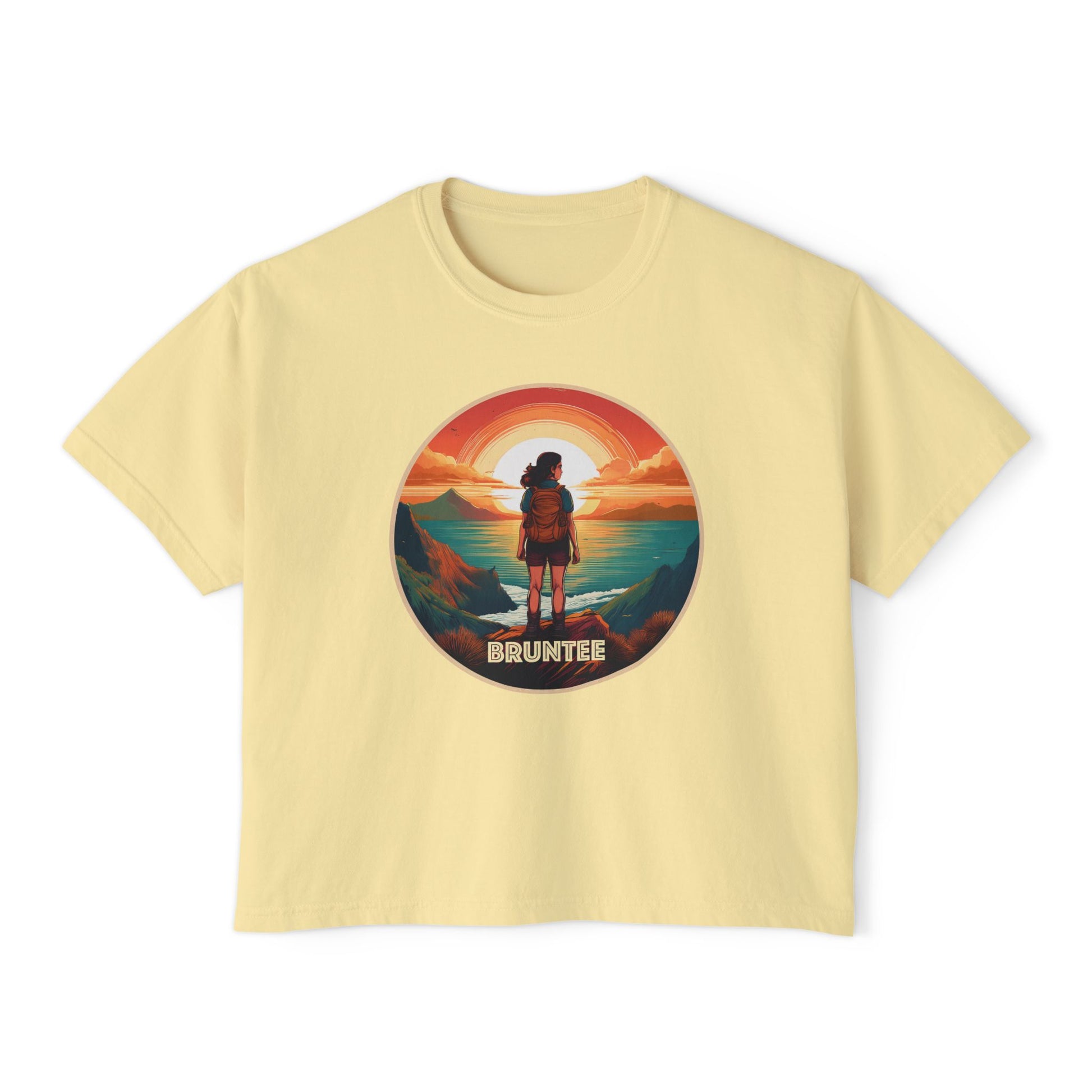 Elevate your casual style with this Women’s Boxy Tee, featuring a scenic sunset design and a modern, relaxed fit. Crafted from 100% ring-spun US cotton, this tee delivers softness, structure, and durability for all-day comfort. The unique pigment-dyed colors give each shirt a vintage-inspired character that stands out in any setting.